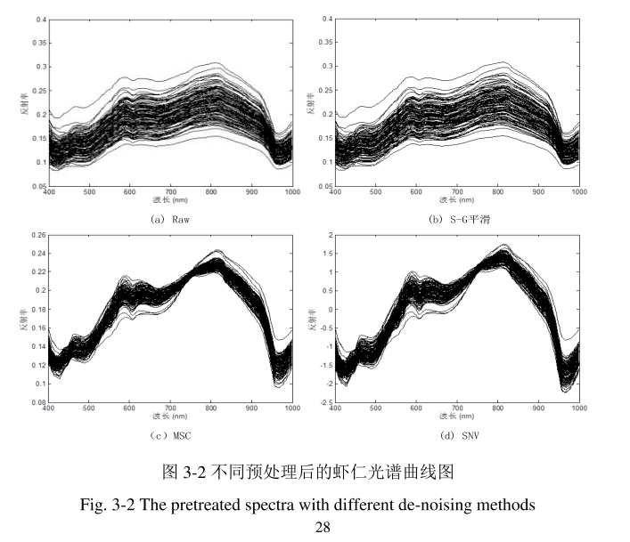 虾类死亡后,在酶和微生物的共同作用下,虾肉的化学成分(蛋白质、糖类、脂肪等)不断被分解成氨、胺类、有机酸、CO2、脂肪酸、甘油、醛和酮等化合物间。同时虾仁的组织结构也逐渐被破坏,其色泽、纹理、硬度、弹性及气味等外部特征均不断变化,最终导致腐败变质而不能食用17.81。随着生活水平的提高,消费者对虾类等水产品的安全品质需求越来越高。新鲜度既是水产品腐败程度的直接反映,也是水产品品质安全评价的一项重要指标。因此,快速、无损、准确地检测虾仁的新鲜程度不仅与消费者的切身利益息息相关,也对虾仁及其制品的运输、储藏和销售有着重要的科学意义和应用价值。